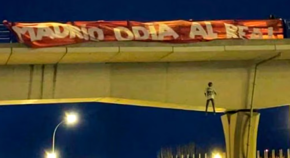 Encima del puente, aparte del muñeco, se colocó una pancarta que rezaba: "Madrid odia al Real". Esta fue la imagen que dio la vuelta al mundo: