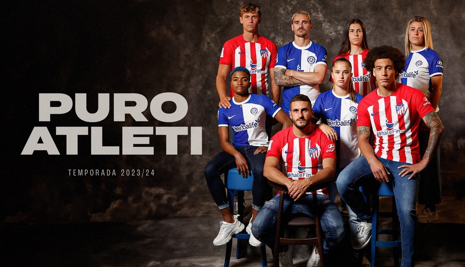 Por su parte, para los encuentros como visitante, el Atlético repite con la camiseta conmemorativa por el 120 aniversario que presentó en la 2022/23. De este modo, los colores azul y blanco volverán a ser protagonistas, con una parte izquierda de tono blanco, mientras que la derecha y las mangas serán azules. En el pecho, el escudo será el original del club en 1903.