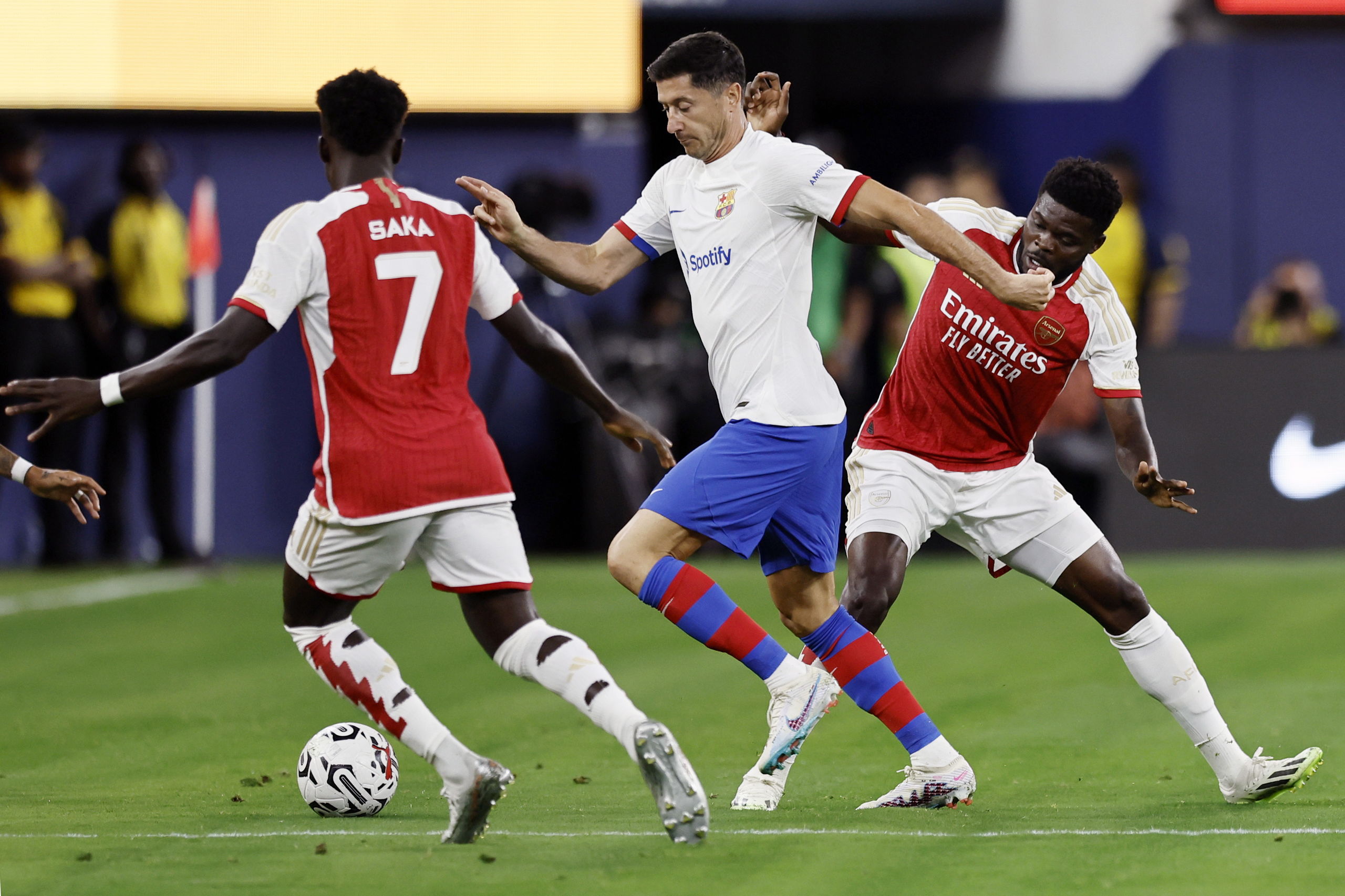Goles: 0-1, m. 7: Lewandowski; 1-1, m. 13: Saka; 1-2, m. 34: Raphinha; 2-2, m. 43: Havertz; 3-2, m. 55: Trossard; 4-2, m. 78: Trossard; 4-3, m 88: Ferran Torres; 5-3, m. 90: Vieira.