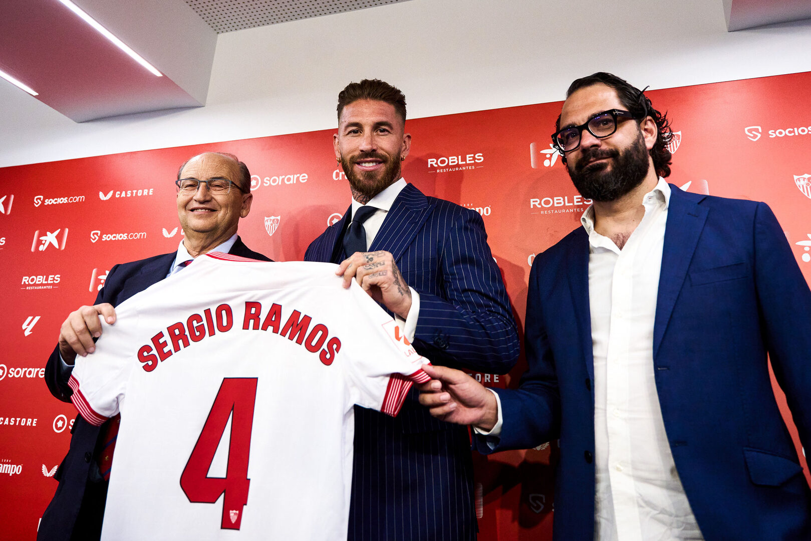 Sergio Ramos ha sido el último fichaje del Sevilla para esta nueva temporada y este miércoles ha sido presentado en el estadio Ramón Sánchez-Pizjuán. El jugador ha sido acompañado por el presidente del club, José Castro, por el director deportivo Víctor Orta y también por varios de sus nuevos compañeros.