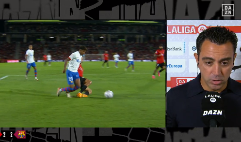 Penalti a Lamine Yamal en el Mallorca-Barcelona que acabó con 2-2 en territorio balear. El árbitro lo pita y posteriormente lo anula. El Barça se queja. Ve penalti. Pero después, en zona mixta, a Xavi Hernández le ponen la repetición y es ahí cuando se ve que la cara del técnico del Barcelona cambia.