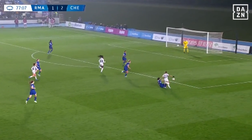 Una pena máxima que Olga Carmona no desaprovechó para establecer a los 79 minutos el que a la postre sería el definitivo 2-2, pese a que el Chelsea dispuso de dos inmejorables ocasiones para alzarse con la victoria. Pero primero Misa con una espectacular parada a lanzamiento de la sueca Johanna Rytting Kaneryd a los 86 minutos y posteriormente el larguero, que repelió un remate de Lauren James en el 89, impidieron que las "blues", que vieron como en la prolongación la colegiada les anuló un gol por fuera de juego, se llevasen los tres puntos del Di Stéfano.