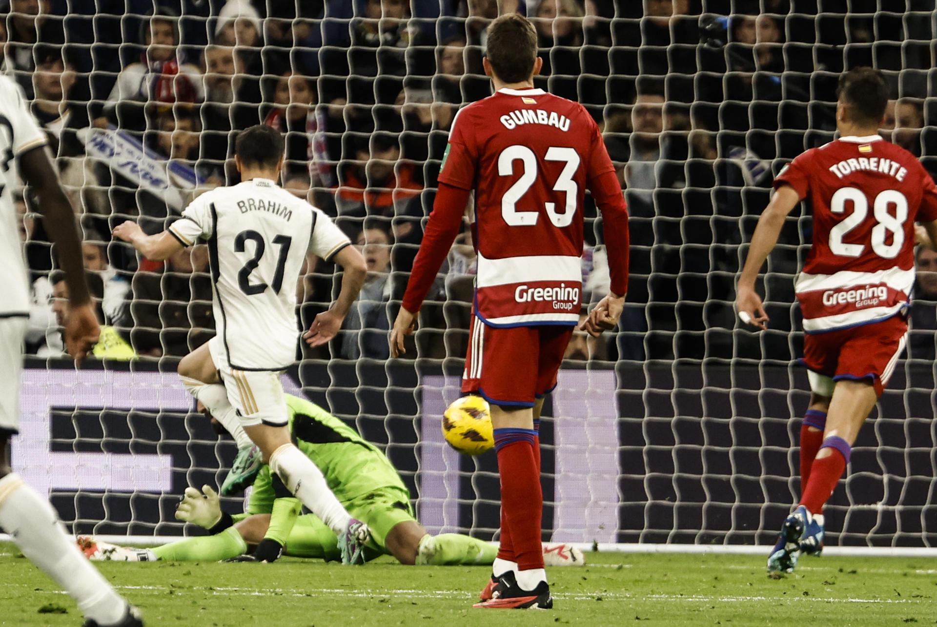 Primera parte buena del Real Madrid con mucho dominio y sobre todo con la sensación de que con poco iba a conseguir mucho. Así fue. Brahim se hizo con todos los focos gracias al gol que marcó mediada la primera parte y con un taconazo tremendo que dejó a Bellingham con opciones de hacer el 2-0. No lo hizo el inglés y el partido siguió abierto a pesar de que el Granada estaba inoperante.