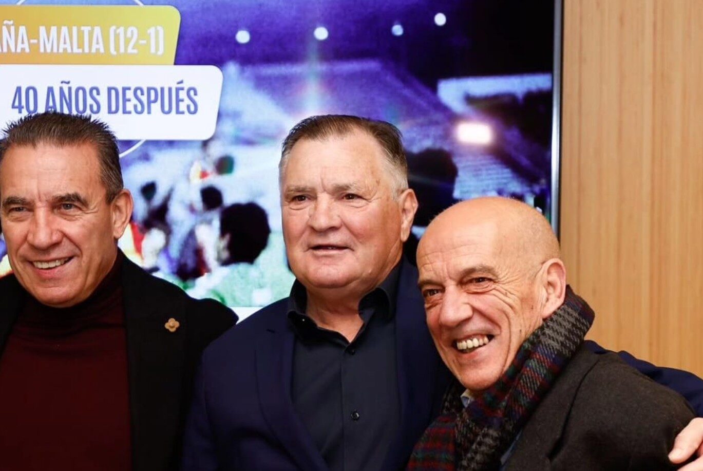 Además, los pasados días 22 y 23 de noviembre se celebró en Sevilla la I Jornada Nacional de Periodismo Deportivo, donde se reencontraron con varios los protagonistas del 12-1 a Malta, en un momento que quedó inmortalizando en una foto junto al periodista José Ángel de la Casa ese momento en el Benito Villamarín. "Siempre que nos reencontramos es una alegría enorme, nos trasladamos en esa máquina del tiempo y en ese estadio que fue importantísimo para nuestras vidas", subrayó Paco Buyo.