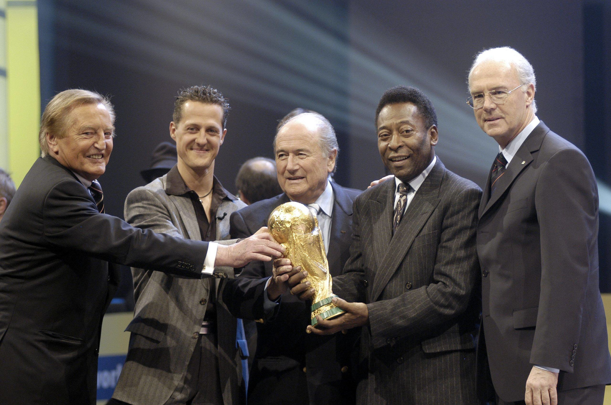 El Kaiser, como era conocido, fue el principal artífice de que el Mundial de 2006 se disputara en Alemania. En la imagen, junto a Michael Schumacher, Joseph Blatter y Pelé, entre otros.