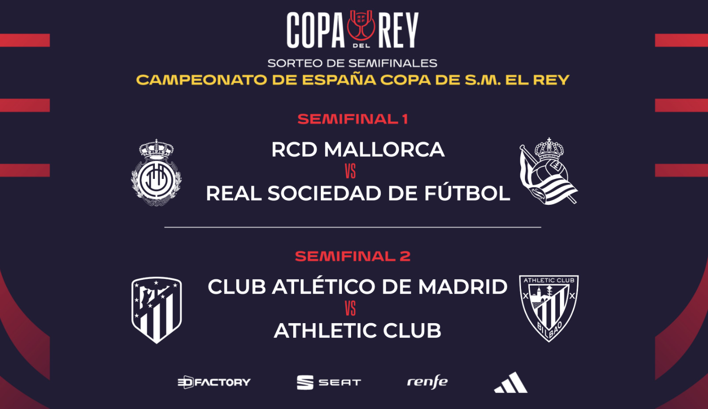 Atlético-Athletic, semifinal estrella de la Copa. Ida en Madrid. Vuelta en Bilbao. En la otra semifinal, Mallorca-Real Sociedad. Así han quedado las semifinales de la Copa del Rey que se disputarán en febrero entre los cuatro equipos que han llegado a esta fase final.