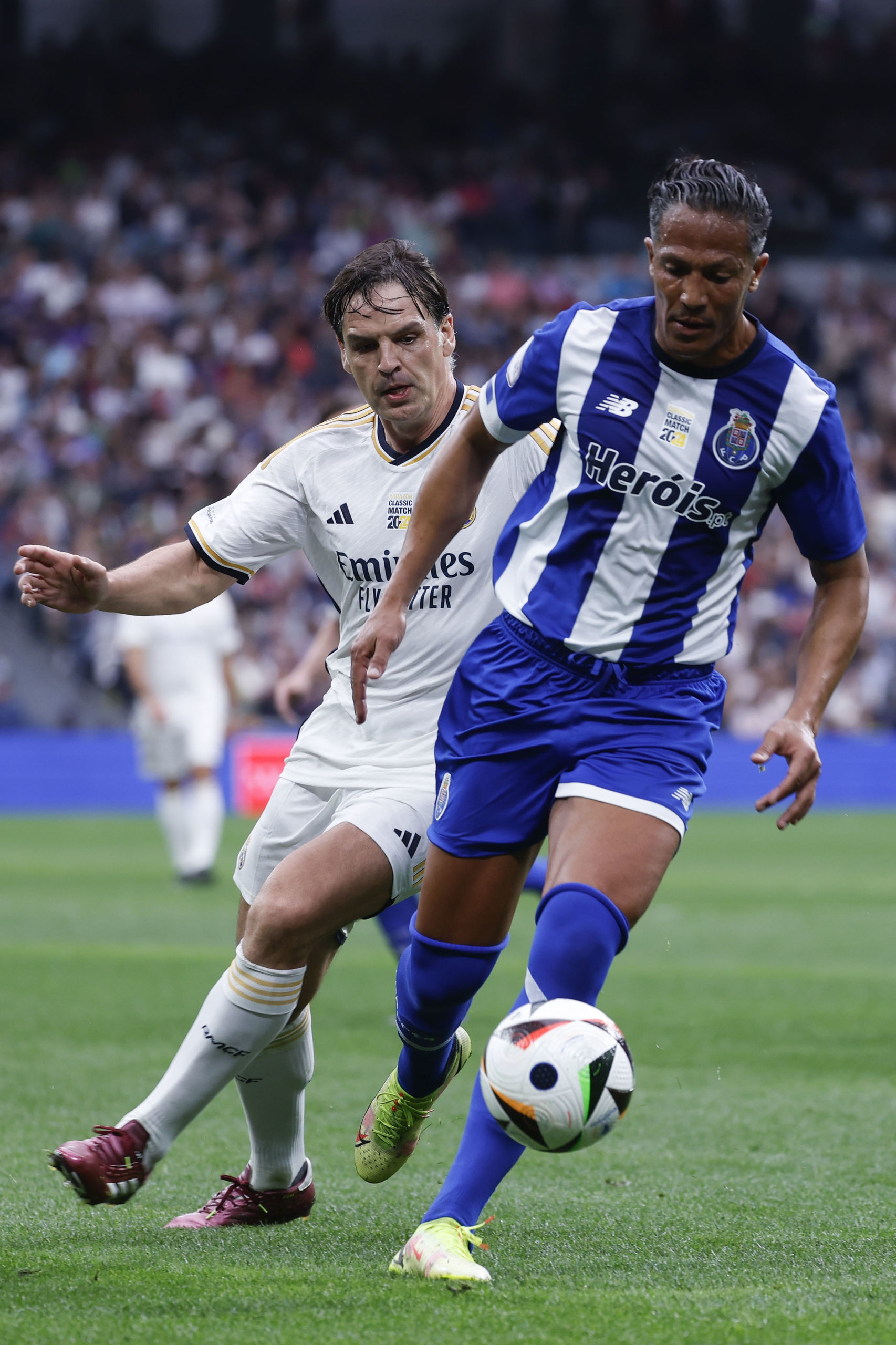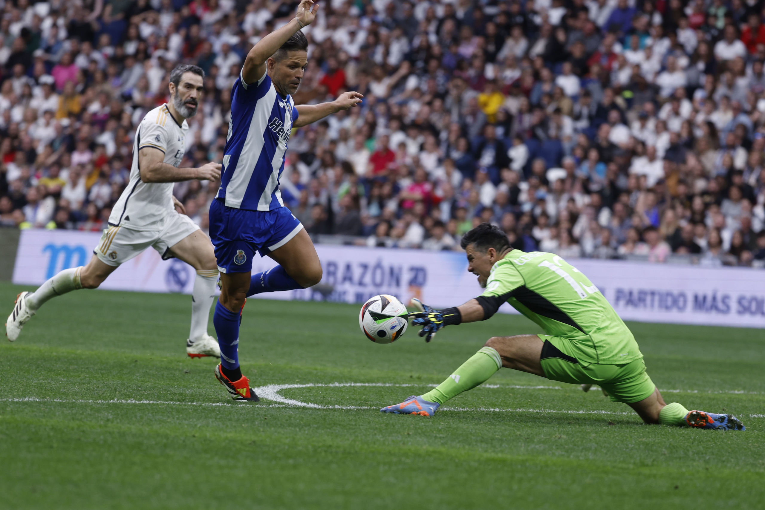 Uno de los jugadores del Real Madrid Leyendas fue Morientes. No tuvo suerte de cara a puerta ante la defensa del Oporto Vintage.
