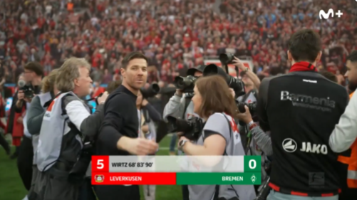 ¡Que viva España! El Leverkusen de Xabi Alonso celebra su primera Bundesliga con el famoso tema patrio tras ganar 5-0 al Wender Bremen y sumar los últimos tres puntos que necesitaba para, matemáticamente, ser campeón de la Bundesliga con muchas semanas de antelación.
