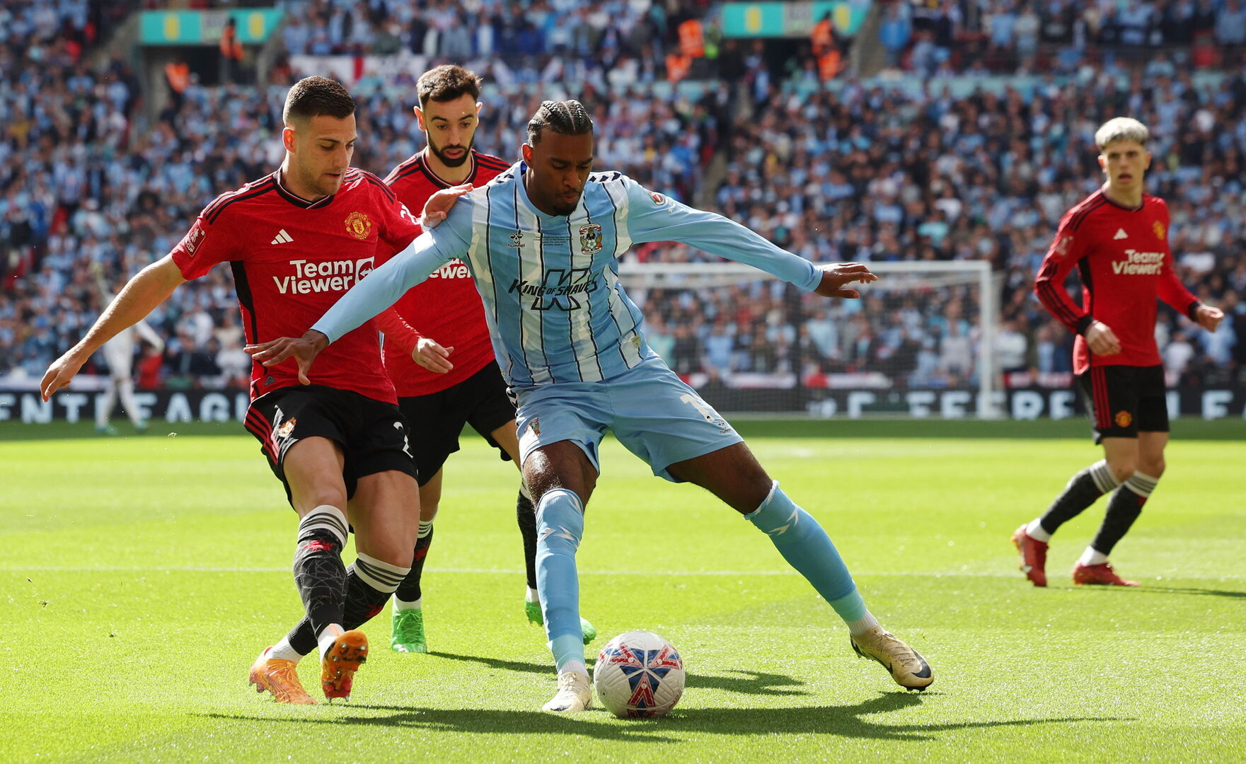 Salieron acogotados a Wembley y el United se lo hizo pagar. Tras un par de oportunidades, para Alejandro Garnacho y Rashford, muy claras ambas; llegó el 0-1 de McTominay, apareciendo como delantero centro para empujar a la red un envío de Diogo Dalot que se coló entre dos jugadores del Coventry.