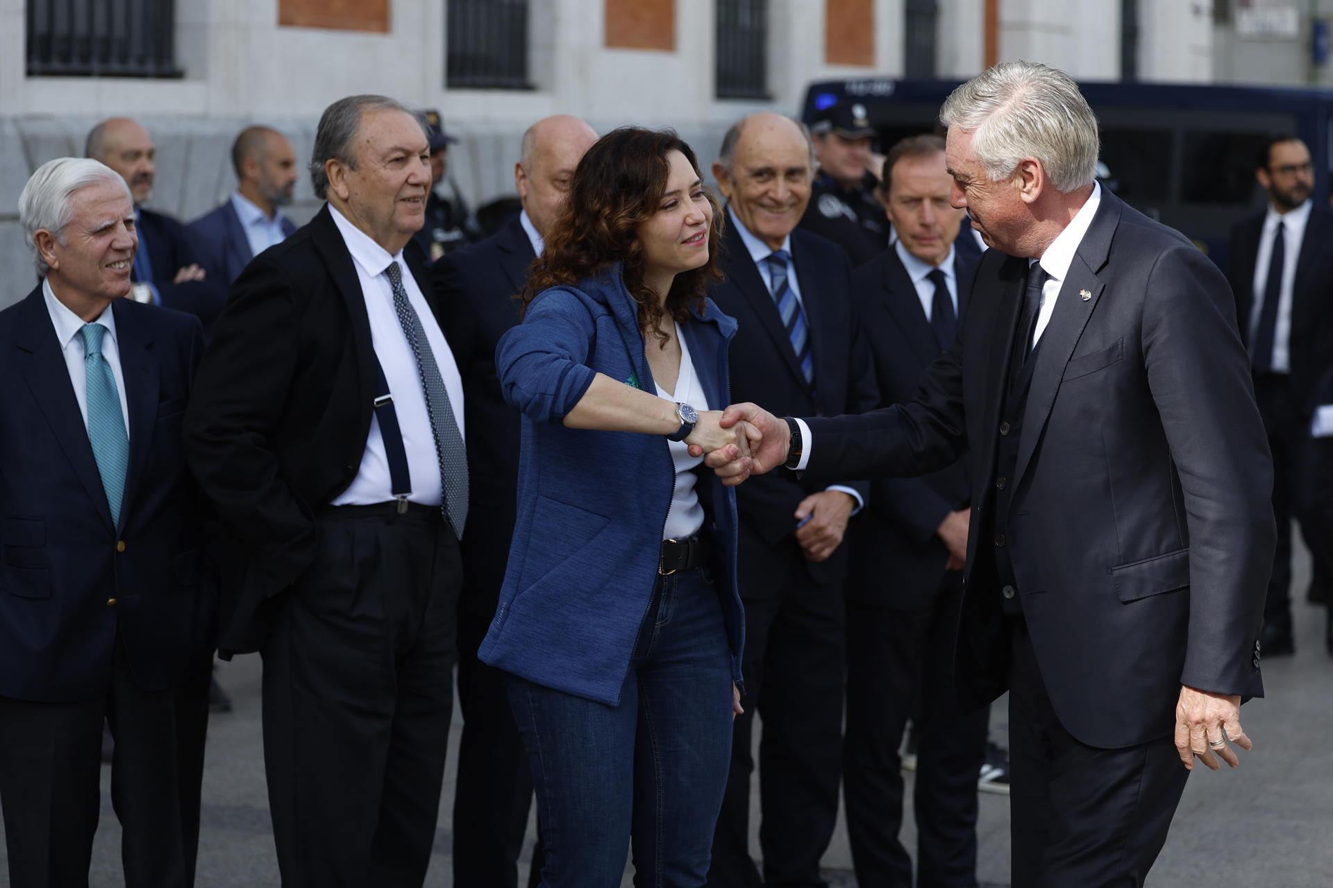Isabel Díaz Ayuso recibió al equipo en Sol y entre ellos, lógicamente, el jefe del conjunto blanco, Carlo Ancelotti.