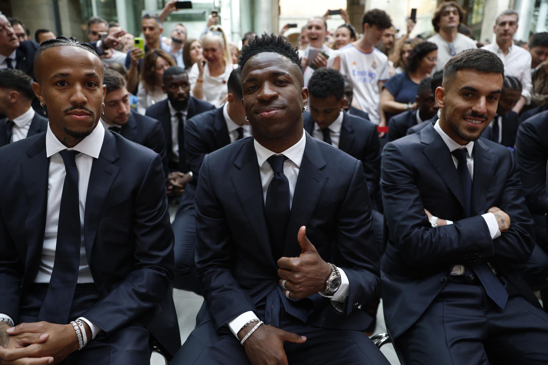 Vinícius, acompañado en la foto por Militao y Ceballos. El brasileño está más de moda que nunca por su indudable calidad.