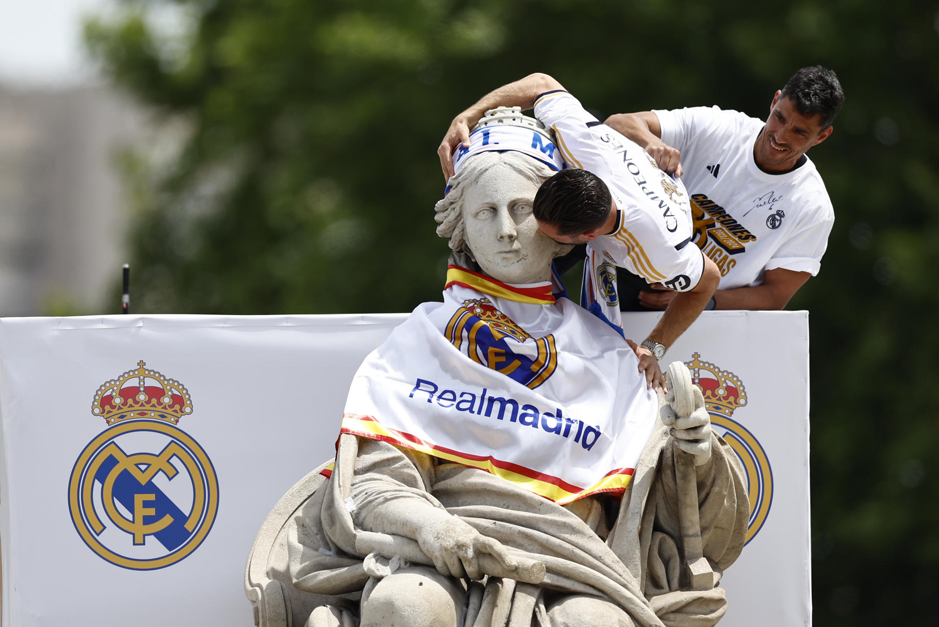 Nacho le dio el correspondiente beso a la diosa Cibeles ante miles de madridistas.