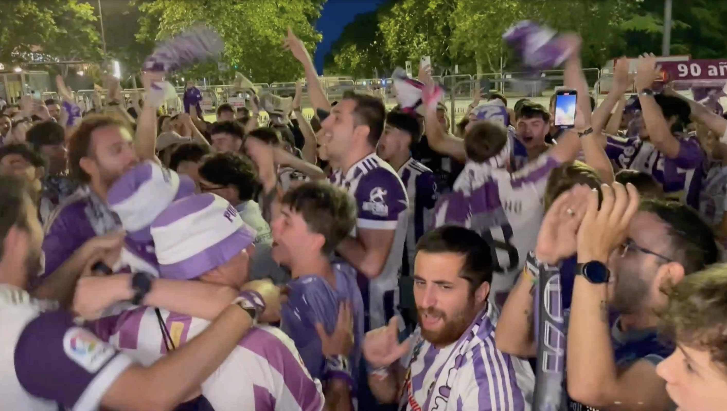 La afición del Valladolid celebra su ascenso a Primera División.