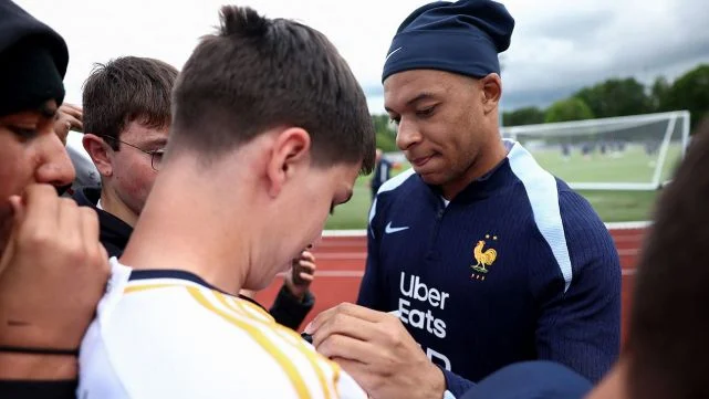 Kylian Mbappé atendiendo a un aficionado del Real Madrid. Comienza a acostumbrarse a su nueva vida. FUTURO GALÁCTICO. pic.twitter.com/VPRYtHJuh9