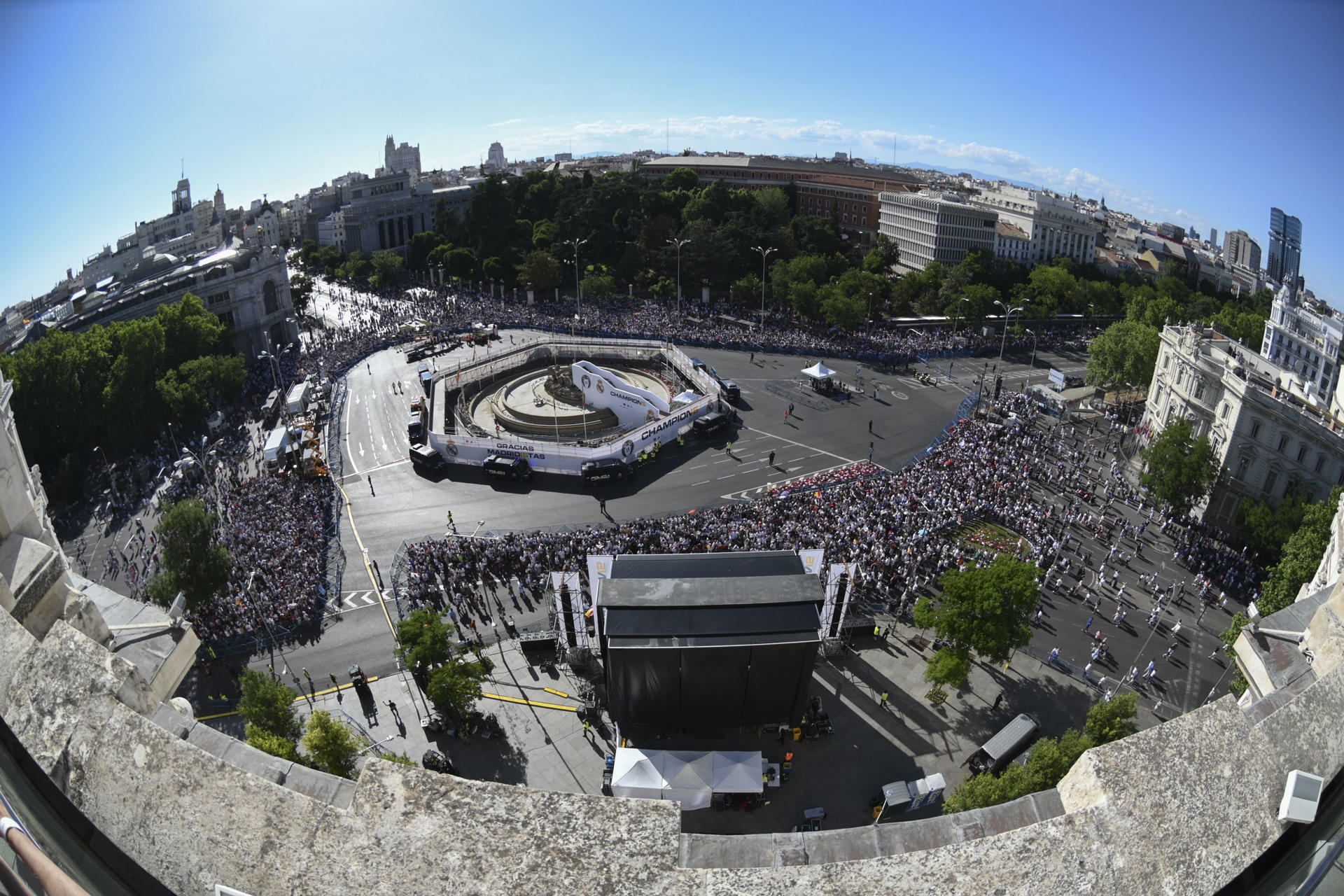 Mucho antes de que los jugadores blancos llegasen a la Plaza de Cibeles, la afición blanca llenaba las calles.
