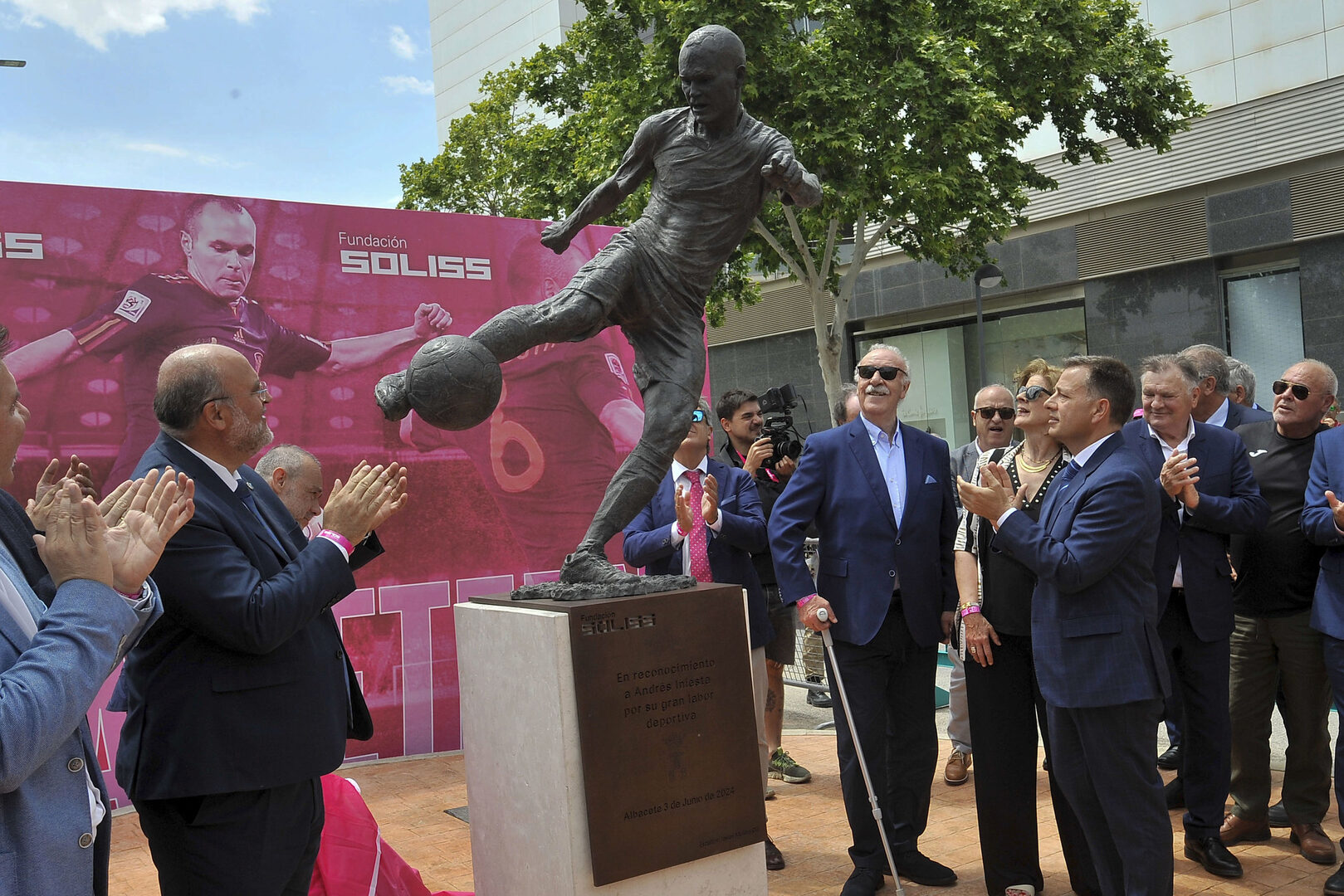 Andrés Iniesta ha confiado en estar "muy pronto" en la ciudad para apreciar en directo la obra, algo que ha confirmado posteriormente su padre, José Antonio Iniesta, quien ha excusado la ausencia de su hijo y ha avanzado que cuando el futbolista venga en verano quiere ver la estatua y celebrar algún acto en torno a ella.
