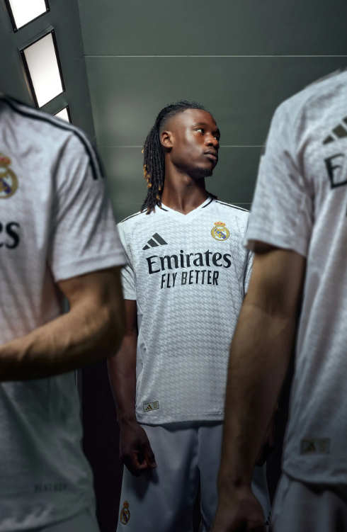 El jugador francés Camavinga fue otro de los elegidos para posar con las nuevas camisetas.