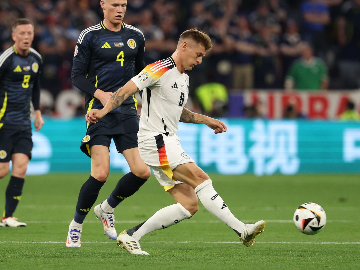 Cada golpeo de Kroos es un lujo que se va a perder en breve. El aficionado alemán así lo apreció y aplaudió cada toque de su particular cirujano, que por fin dio sentido al juego de su selección. Equilibró por completó a Alemania e hizo lo que quiso con los escoceses. Kroos exhibió todo su repertorio, lleno de pases en corto precisos y de balones en largo quirúrgicos. Y, Nagelsmann, consciente de esa virtud, ha sabido rodear a Kroos de jugadores perfectos para su juego. A su lado, Andrich, un correcaminos, aporta el músculo que no tiene Kroos; en las bandas, dos puñales jovencísimos: Wirtz y Musiala, con unos insultantes 21 años; de enganche el siempre efectivo Gündogan; y arriba, el mordisco de Havertz.