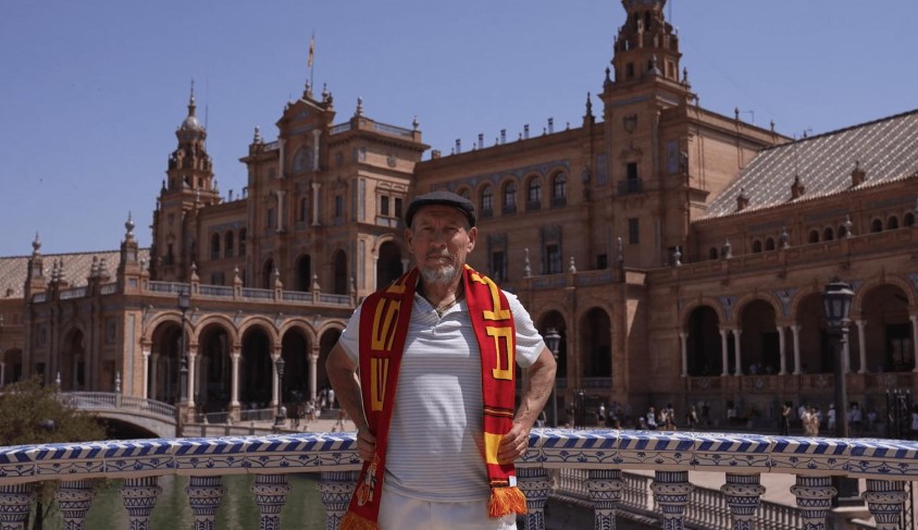"Ser del Betis en Bilbao tiene tela", cuenta. "Aquí todos tenemos nuestros clubes, pero cuando juega la Selección, a muerte con ella", cuenta Paco. En el lado opuesto, José Luis, natural de Barakaldo al que con 36 años la vida lo destinó a Sevilla también por motivos laborales. "Lo primero que me llamó la atención fue el calor. También que lo sevillanos, para algunas cosas, no son muy puntuales. A veces… ni llegan", se queja entre risas en el vídeo. "Ya se llegará… ya se llegará", le replica desde el norte Paco, representante andaluz de esta producción.