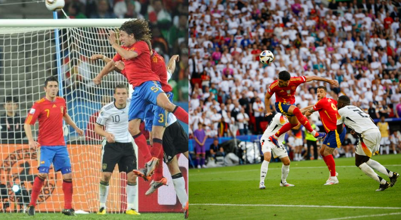 Fernando Torres en la Eurocopa de 2008, en plena final y para darnos el título ganando en la final a los alemanes. Fue en Viena. En 2010, Mundial, Sudáfrica. Carlos Puyol perforaba la portería de Neuer con un cabezazo descomunal. Y ahora, en 2024, Eurocopa de Alemania y en la prórroga, Mikel Merino fue el autor de otro gol para la historia.