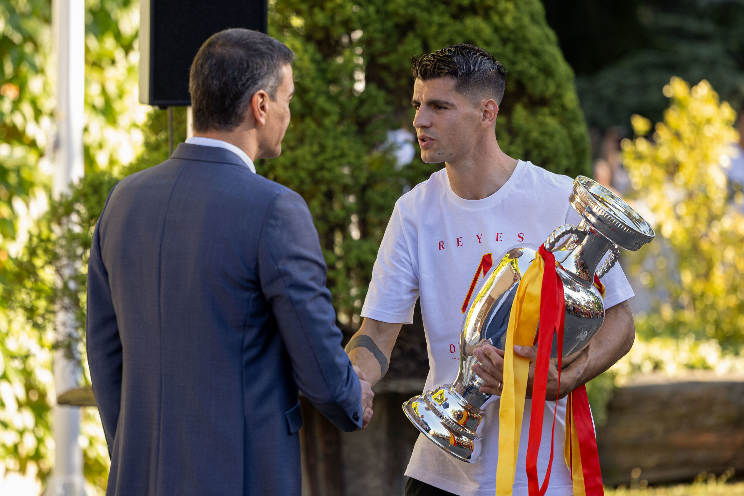 Álvaro Morata saluda al presidente del Gobierno, Pedro Sänchez.