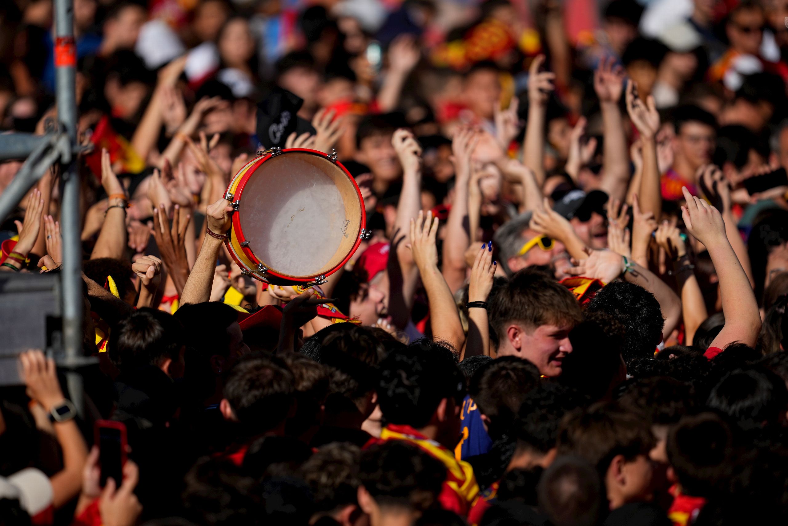 Aficionados de la selección española esperan en Cibeles la llegada de los jugadores.