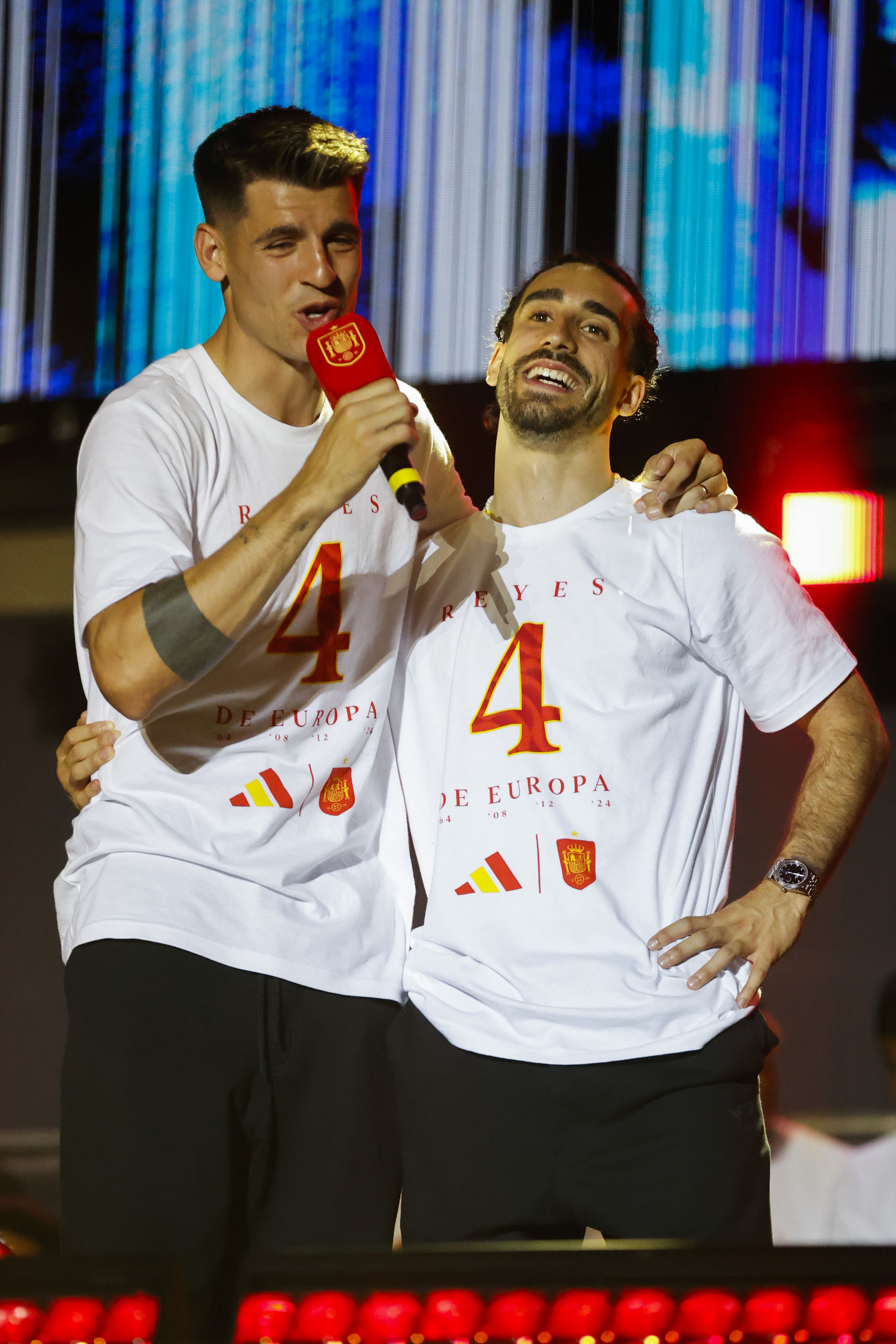 El maestro de ceremonias Álvaro Morata y Marc Cucurella, uno de los protagonistas de la fiesta.