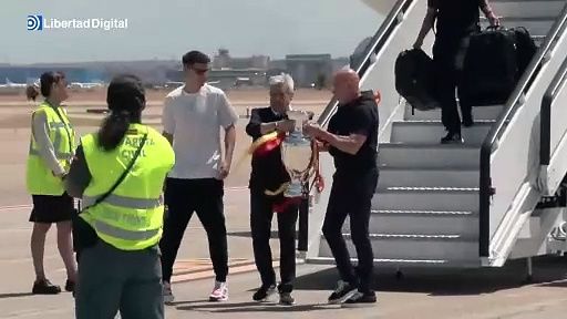 El avión, con los integrantes de la selección española de fútbol campeona de la Eurocopa 2024, con el trofeo conquistado, ha aterrizado procedentes de Alemania en una de las pistas del Aeropuerto Adolfo Suárez Madrid-Barajas de Madrid poco después de las 15:00 horas.