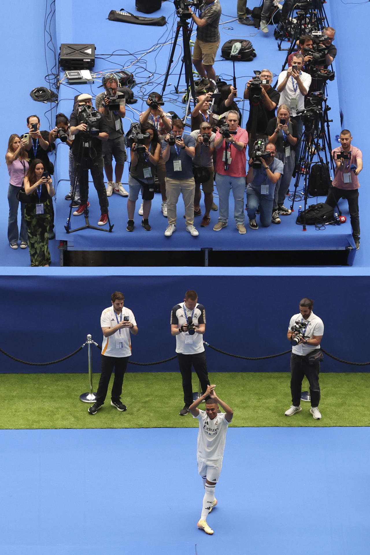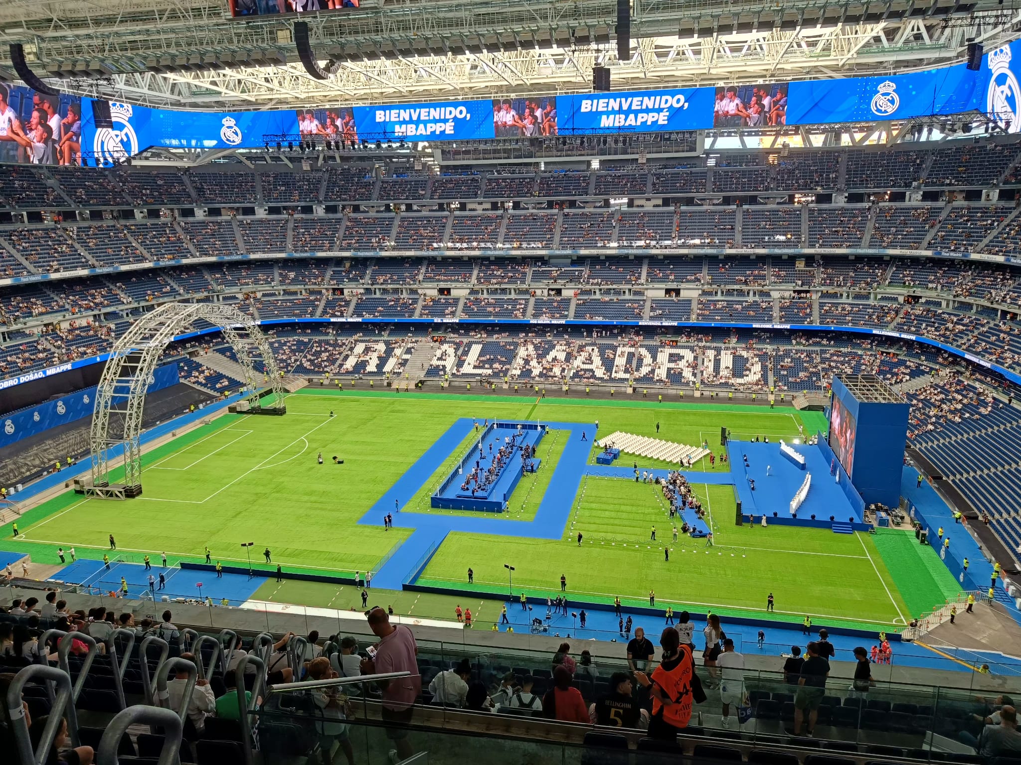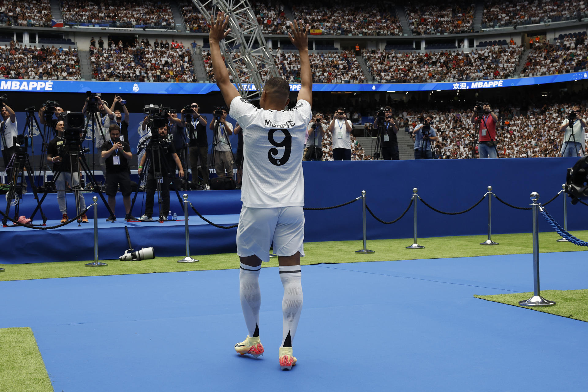 Todas las cámaras se centraron en Mbappé cuando pisó el Bernabéu por primera vez como jugador merengue.