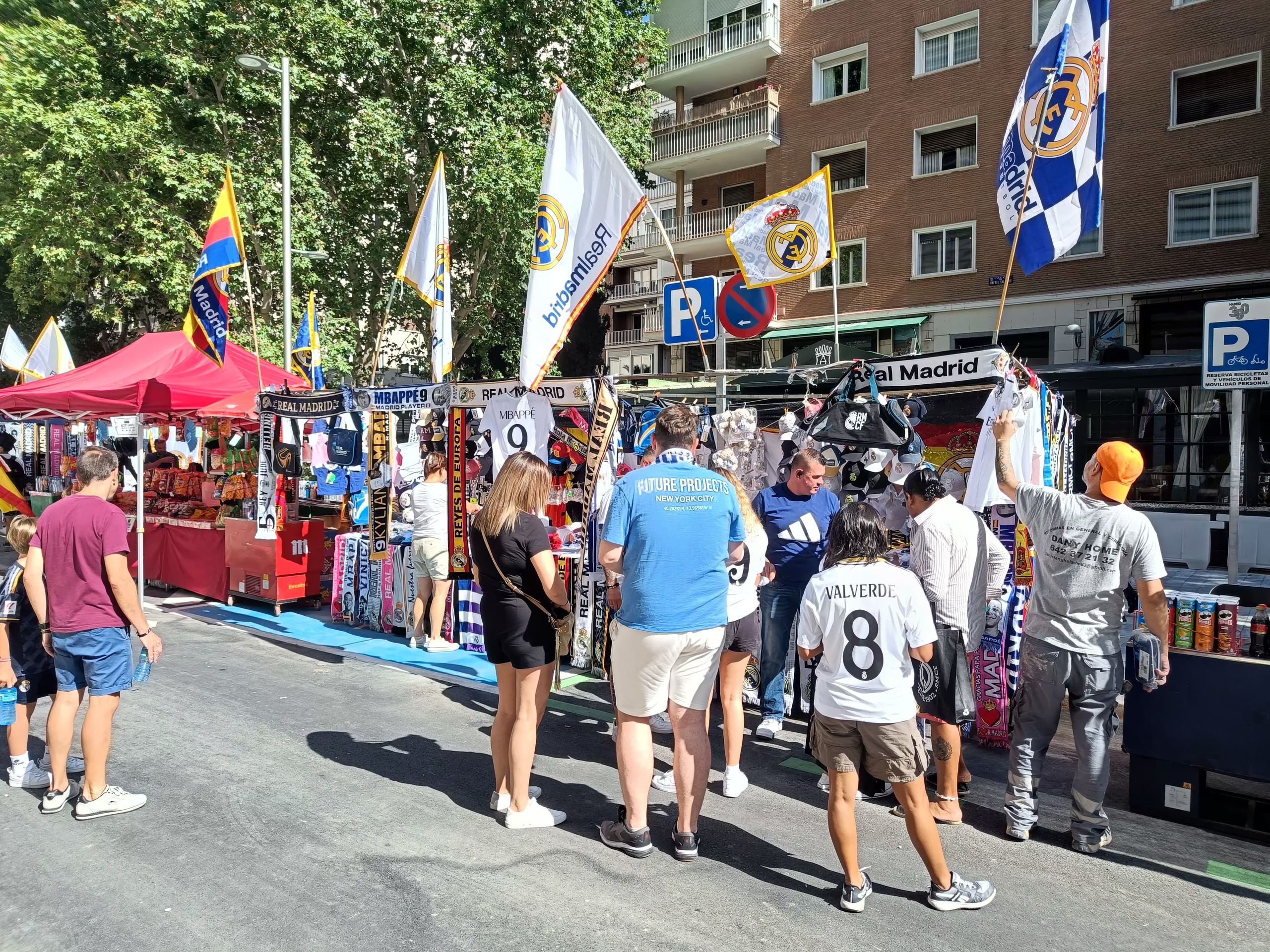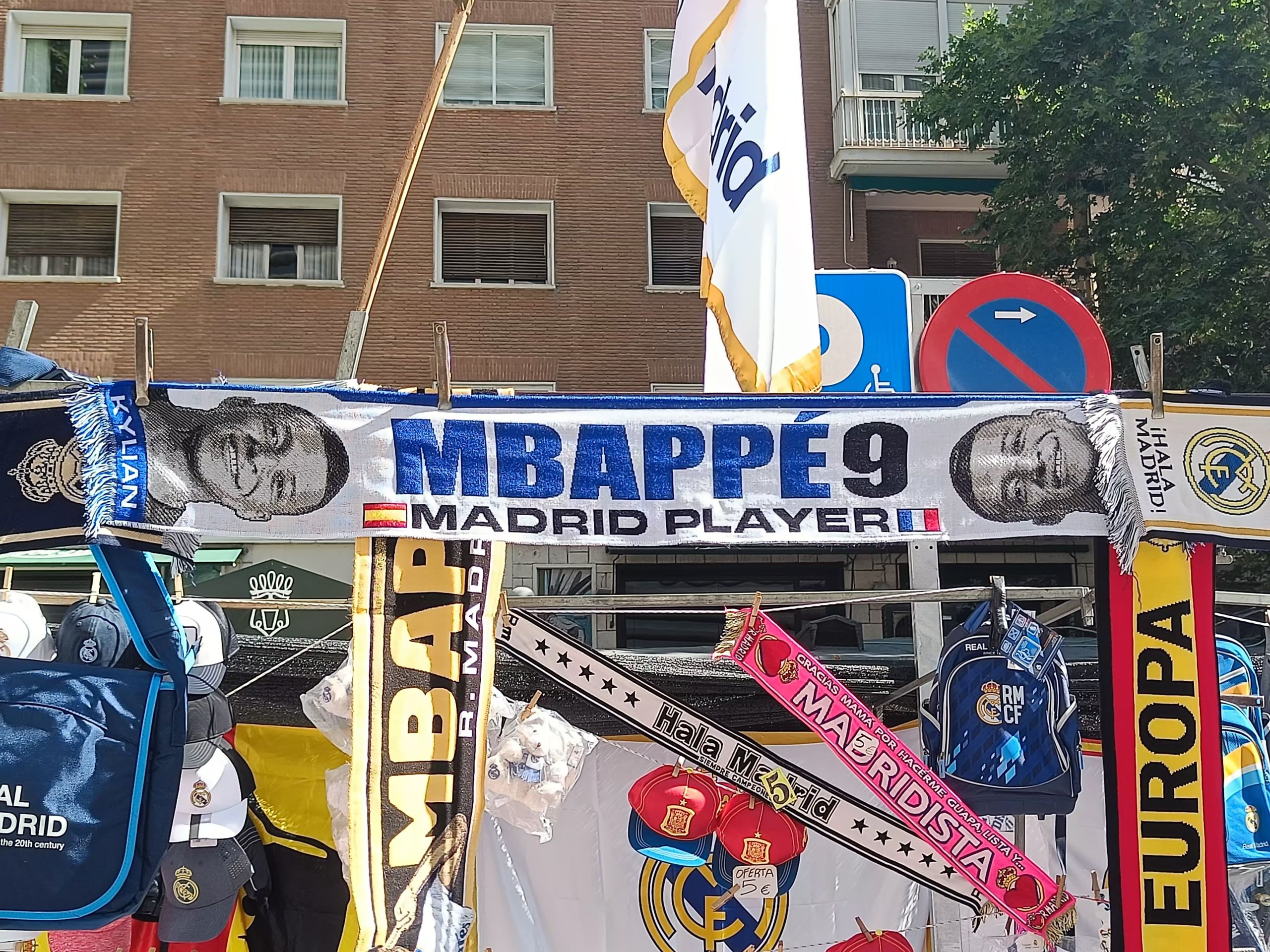 La tienda del Bernabéu se llenó de peticiones de camisetas de Kylian y los puestos de los aledaños también.