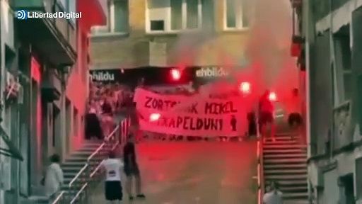 Este es el momento del recibimiento donde se puede ver justo detrás de la cuadrilla el frontal de la sede de Bildu. ¿Casualidad?: