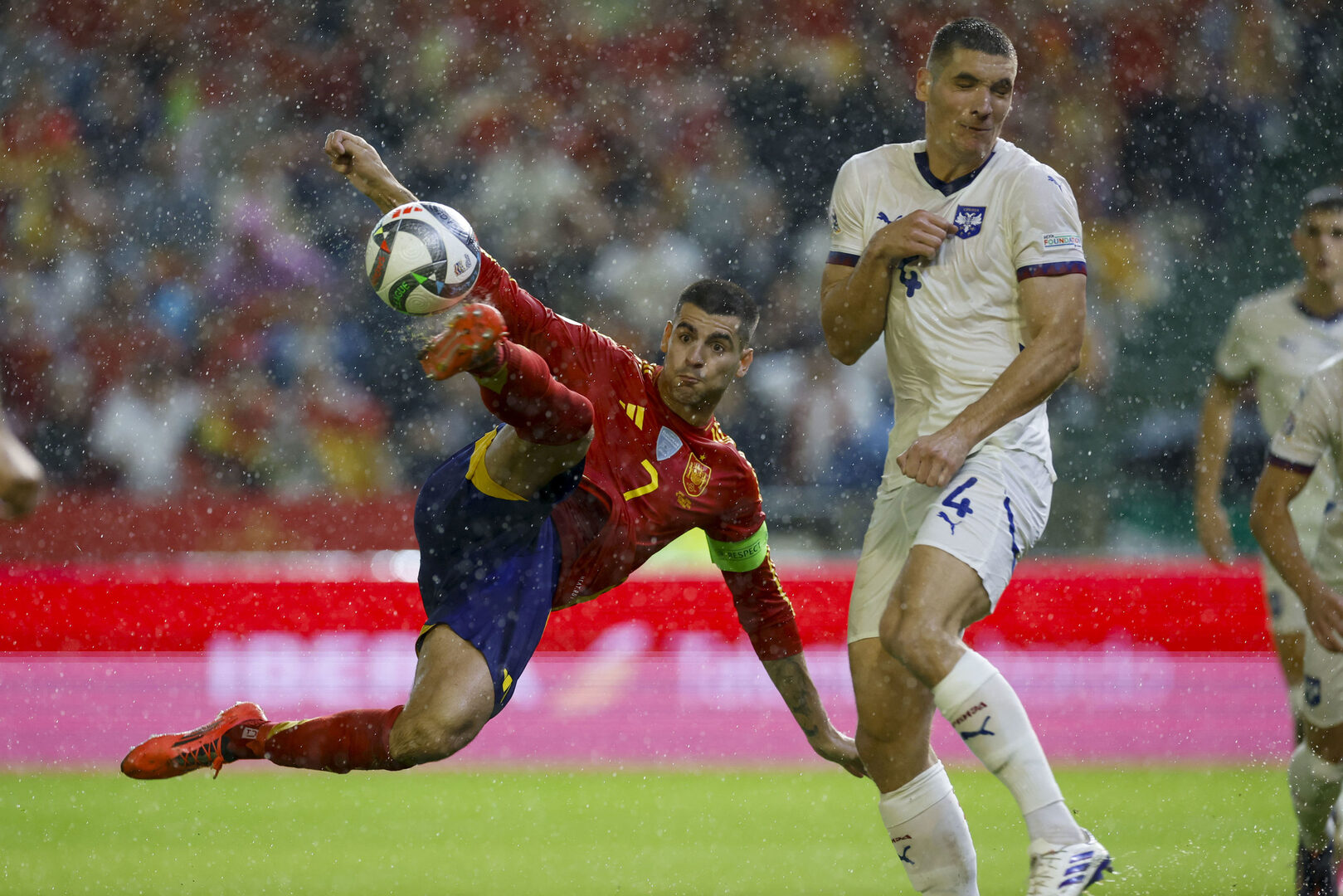 Al filo del descanso, Morata remató un gran centro de Cucurella obligando la enésima intervención de Rajkovic, una ocasión que dejó una tremenda ovación de El Arcángel al capitán. Pero pese a la exhibición de juego de España y a las numerosas ocasiones, el partido se marchaba abierto a vestuarios con el solitario gol de Laporte.