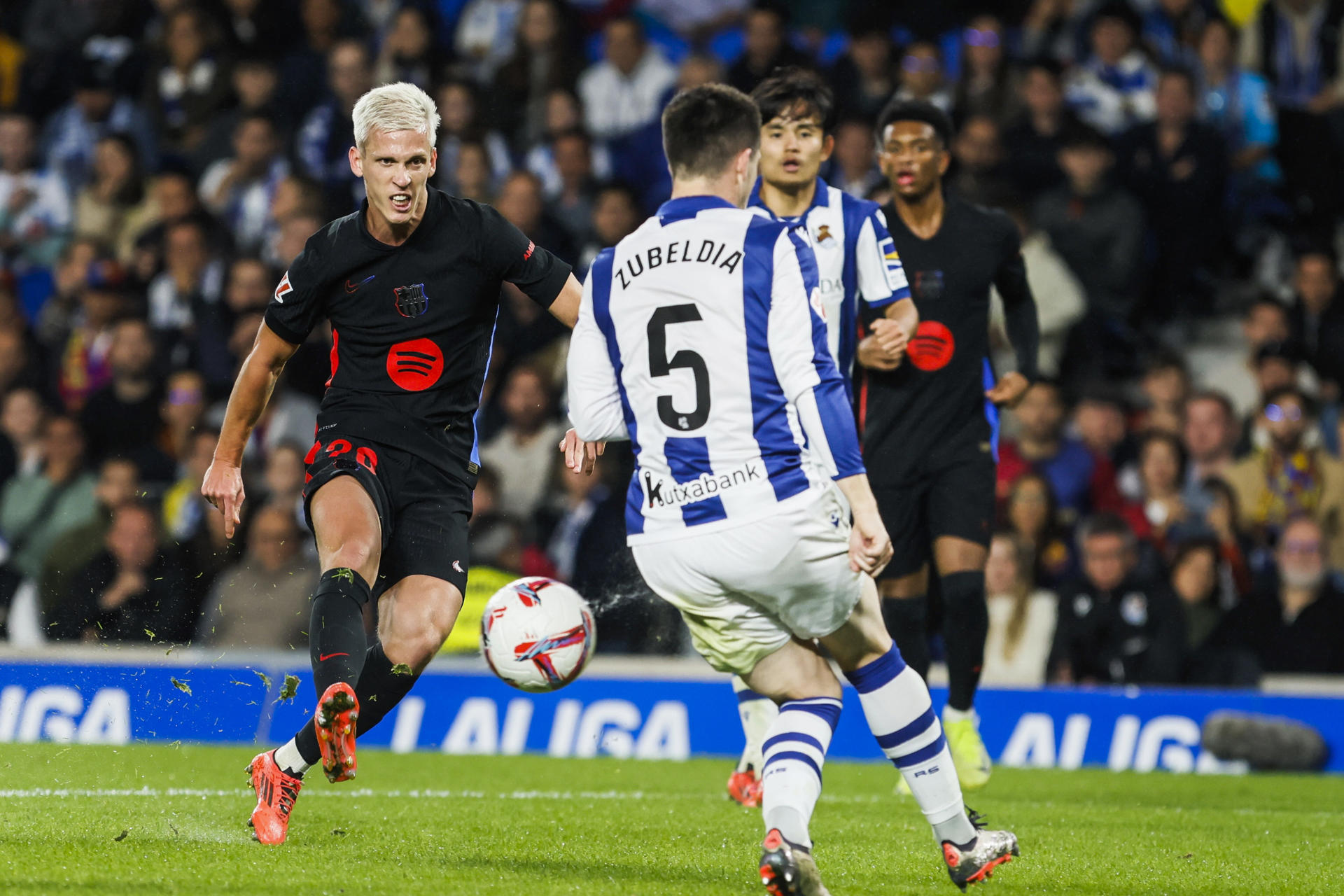 El Barcelona, poco inspirado, creó poco peligro en el área txuri urdin, algo inusual en este nuevo Barcelona de Hansi Flick, mientras que la Real, con un derroche físico descomunal, puso contra las cuerdas a los azulgranas con algunos contraataques.