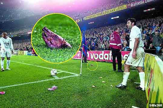 El 23 de noviembre de 2002 se vivió uno de los clásicos más tensos entre Barcelona y Real Madrid en el Camp Nou. Cientos de objetos cayeron sobre Luis Figo, que volvía al estadio del Barça después de fichar por el Real Madrid. Entre todo lo que fue arrojado, apareció una cabeza de cochinillo. No se cerró el Camp Nou.