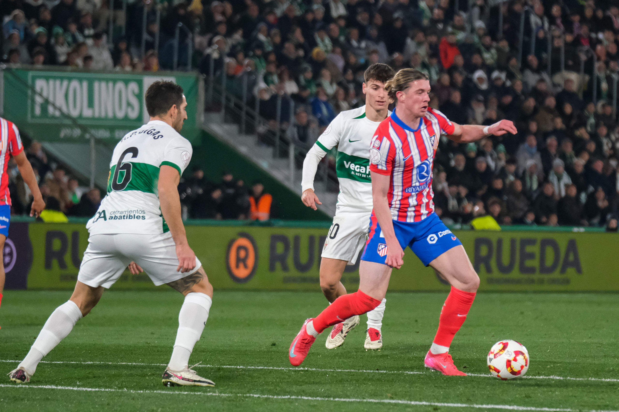 El equipo de Diego Pablo Simeone, que prolonga a quince victorias consecutivas su racha triunfal esta temporada, convirtió en sencilla una eliminatoria que se intuía más complicada por el estado de forma en la que estaba su rival, al que anuló todas y cada una de sus fortalezas. Un doblete de 8: Sorloth, Riquelme y Julián Álvarez marcaron los tantos y meten en cuartos al equipo rojiblanco.