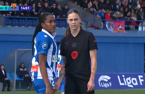 Derbi catalán entre Espanyol y Barcelona. El derbi acabó con victoria por 0-2 para las azulgranas, lo habitual en una liga dominada claramente por el equipo blaugrana, pero el momento polémico llegó en una jugada a balón parado con Mapi León, estrella del Barcelona e internacional por España.