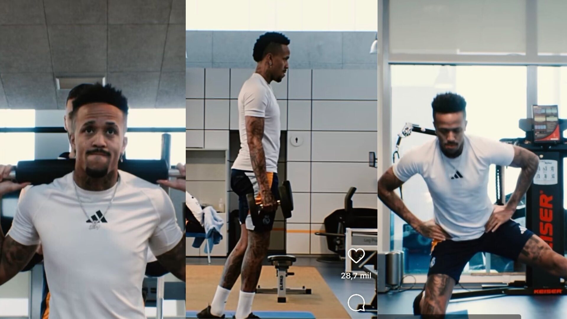 Con el mensaje Un paso más y con varios emoticonos – el reloj de arena y manos levantadas –, Militao muestra un día de entrenamiento alejado del césped: desde su camino en coche a Valdebebas hasta los ejercicios que realiza en el gimnasio. Incluso, le da tiempo a realizar un pequeño baile, dar unos toques al balón y practicar un nuevo deporte, el baloncesto, lanzando varios tiros a canasta y celebrando los puntos anotados. Los momentos inmortalizados están acompañados de la canción Imagina esse Cenário, un ejemplo más de positivismo.