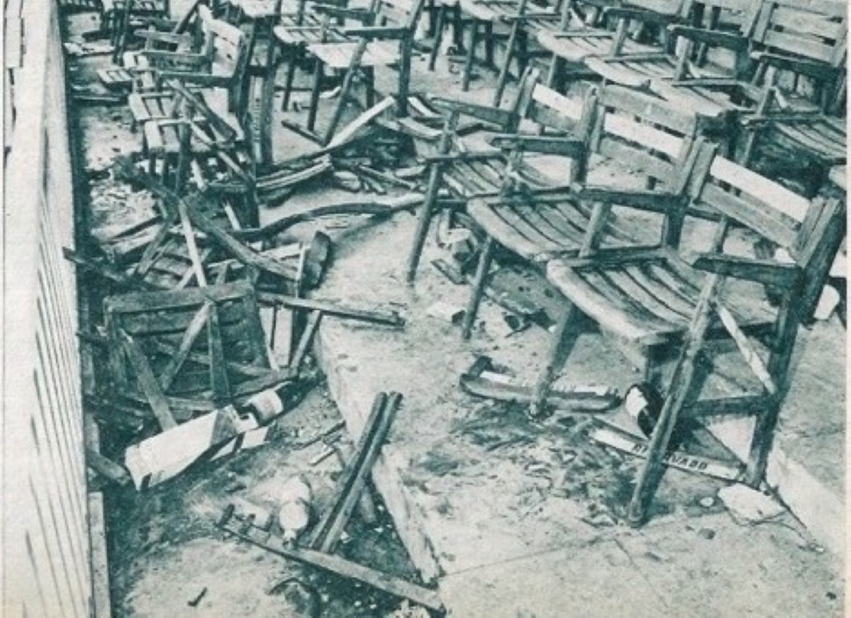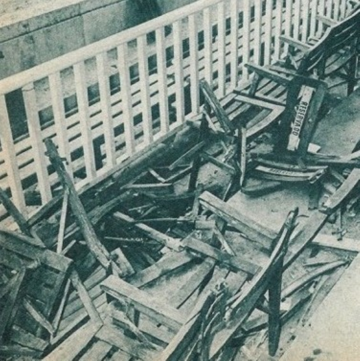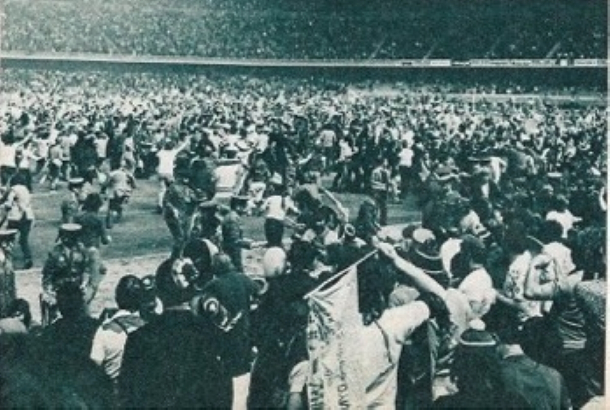 Y cuando Ortiz de Mendíbil pita el final del partido, con 3-2 a favor del Rangers, rugió la marabunta y miles de escoceses, ebrios y enfervorecidos, saltaron al campo. La policía intervino entonces con contundencia, y se organizó una auténtica batalla campal, con un saldo de más de cien heridos (y parece ser que incluso un par de fallecidos, uno de ellos a causa de un infarto). A las porras de los Grises, los hooligans respondieron arrancando los asientos de madera de las gradas y convirtiéndolos en armas arrojadizas, así como las botellas de cristal de los bares del estadio que tomaron por asalto, saqueándolos, más algunos materiales propios como navajas y cadenas de bicicleta, porque hace medio siglo largo nadie registraba ni escaneaba a quienes accedían a un recinto deportivo. La violenta trifulca se prolongó durante un par de horas, de modo que el trofeo no pudo ser entregado a los campeones en el terreno de juego, como era lo habitual en la época, sino en la relativa seguridad de los vestuarios.