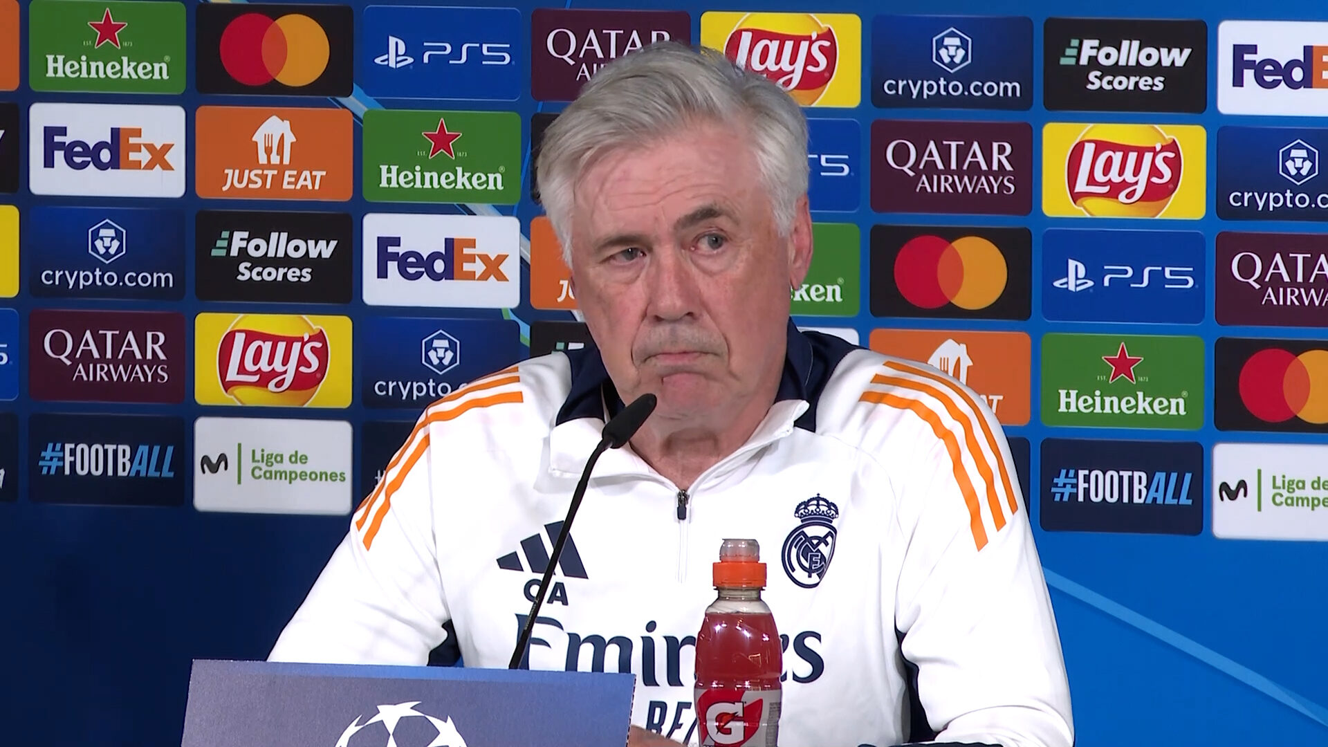 Sobre su futuro, el entrenador del Real Madrid mantiene que no es el momento de hablar del tema y también mostró un tono serio y contundente: "Porque ahora no quiero hablar de mi futuro. Lo hablaré con el club, no con vosotros".