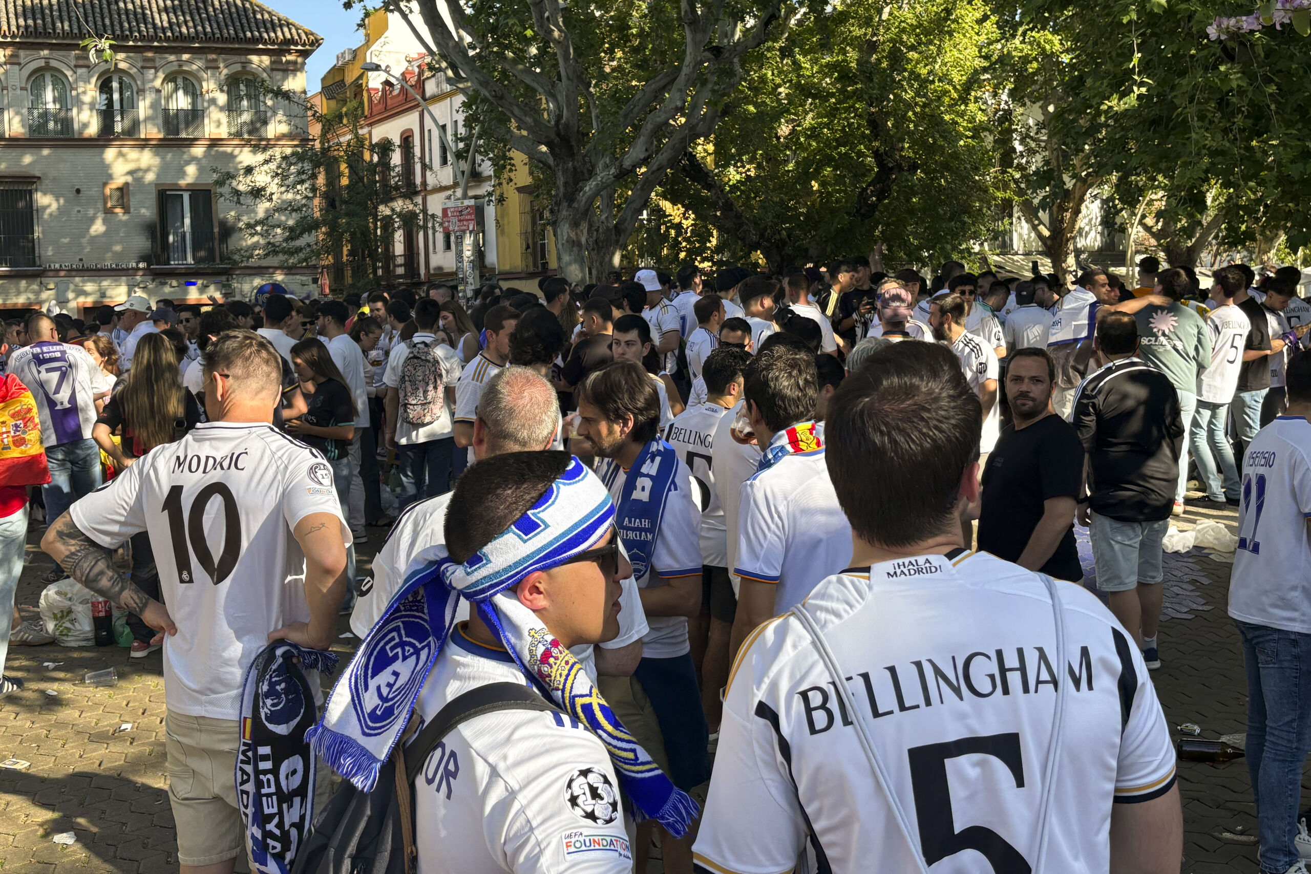 Miles de aficionados de los 2 equipos llenan las calles y los bares del centro de Sevilla, en una jornada calurosa, a la que han ido llegando desde este viernes en coches particulares, autobuses y trenes fletados por los equipos contendientes, además de los aviones procedentes de Madrid y Barcelona, y las numerosas peñas que ambos equipos tienen repartidas por Andalucía y la vecina Extremadura.