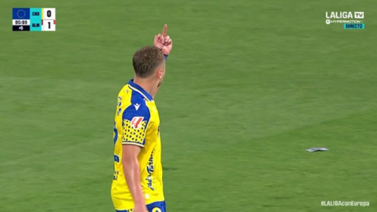 En los últimos minutos, el Almería no pudo resistir más y llegaron esos dos goles seguidos de Carlos Fernández (m.95) y Víctor Chust (m.97) que le dieron los tres puntos al Cádiz. Eso sí, mal gesto de Ontiveros con la peineta que pueden ver en la foto que ilustras este artículo. Fue tras el 1-1.