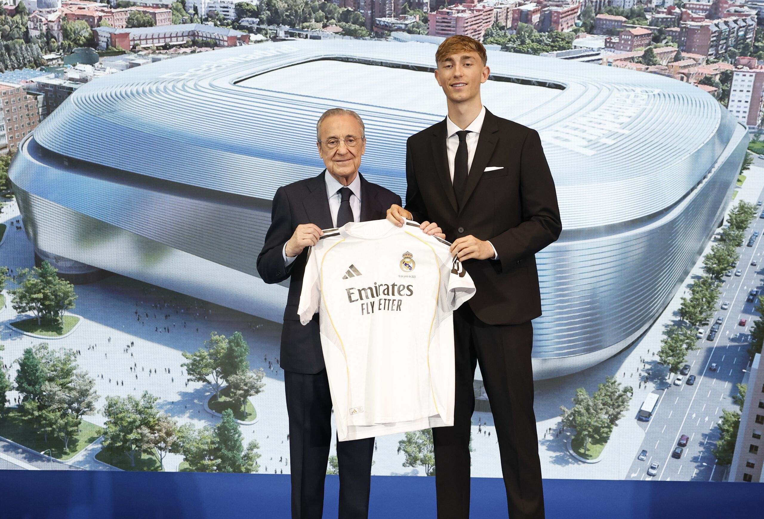 "Llegas al Real Madrid cargado de ilusiones y dispuesto a comenzar un recorrido que será el mayor desafío de tu carrera profesional. Pero a pesar de tu juventud, ya has demostrado que estamos ante uno de los grandes jugadores que han irrumpido en el mundo del fútbol en los últimos años. Te traen tus ganas para triunfar en nuestro club", agregó el dirigente.
