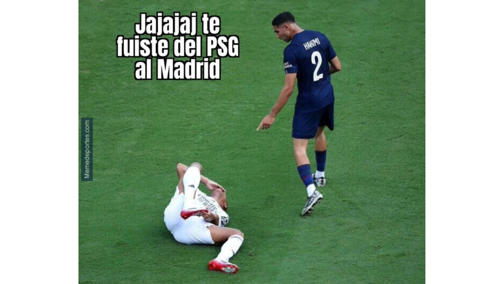 Hakimi riéndose de Mbappé después de su salida del PSG. El caso del defensa fue al contrario, estuvo en el Real Madrid, pero terminó en las filas del equipo parisino.