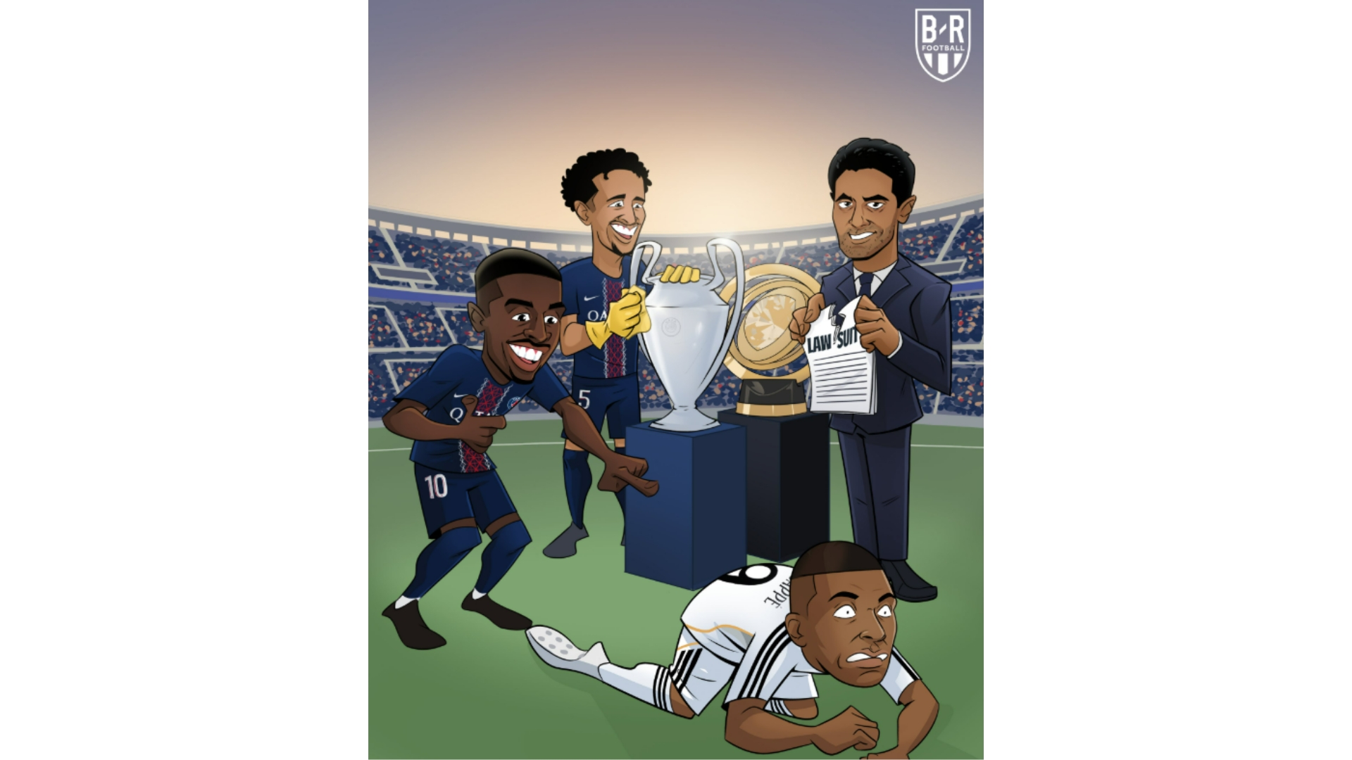 Se recrea la marcha de Mbappé del PSG, Nasser Al-Khelaïfi rompe el contrato del jugador mientras Demblé le señala riéndose y Marquinhos limpia la Champions League.