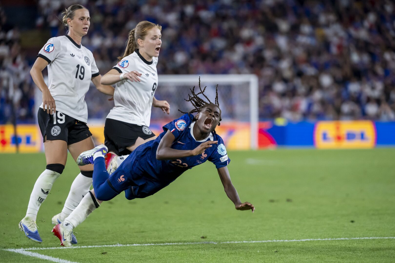 La jugadora alemana se autoexpulsó tras agarrar del pelo a Ambock Bathy dentro del área. El VAR avisó a la colegiada Tess Olofsson y Alemania se quedó en inferioridad numérica. Grace Geyoro, desde los once metros, no falló e hizo su segundo gol en la competición. Fue un acierto extraño en una Eurocopa en la que los errores desde el punto de penalti son constantes, como después comprobaría Alemania.