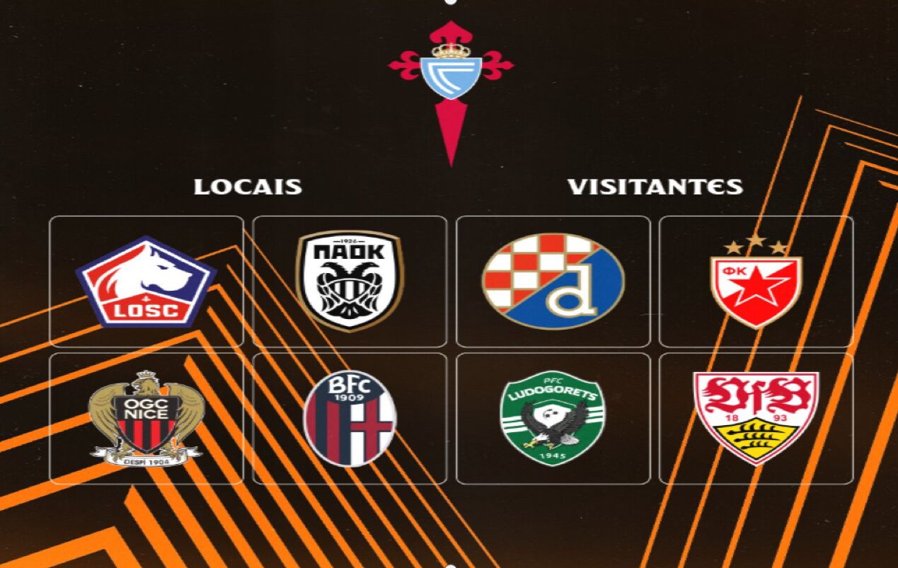 El Celta de Vigo, que vuelve a una competición europea ocho años después de alcanzar las semifinales de la propia Liga Europa y perder con el Manchester United (1-1 y 0-1), recibirá a Lille, PAOK, Niza, que cayó en la tercera ronda previa de la Liga de Campeones con el Benfica, y Bolonia.