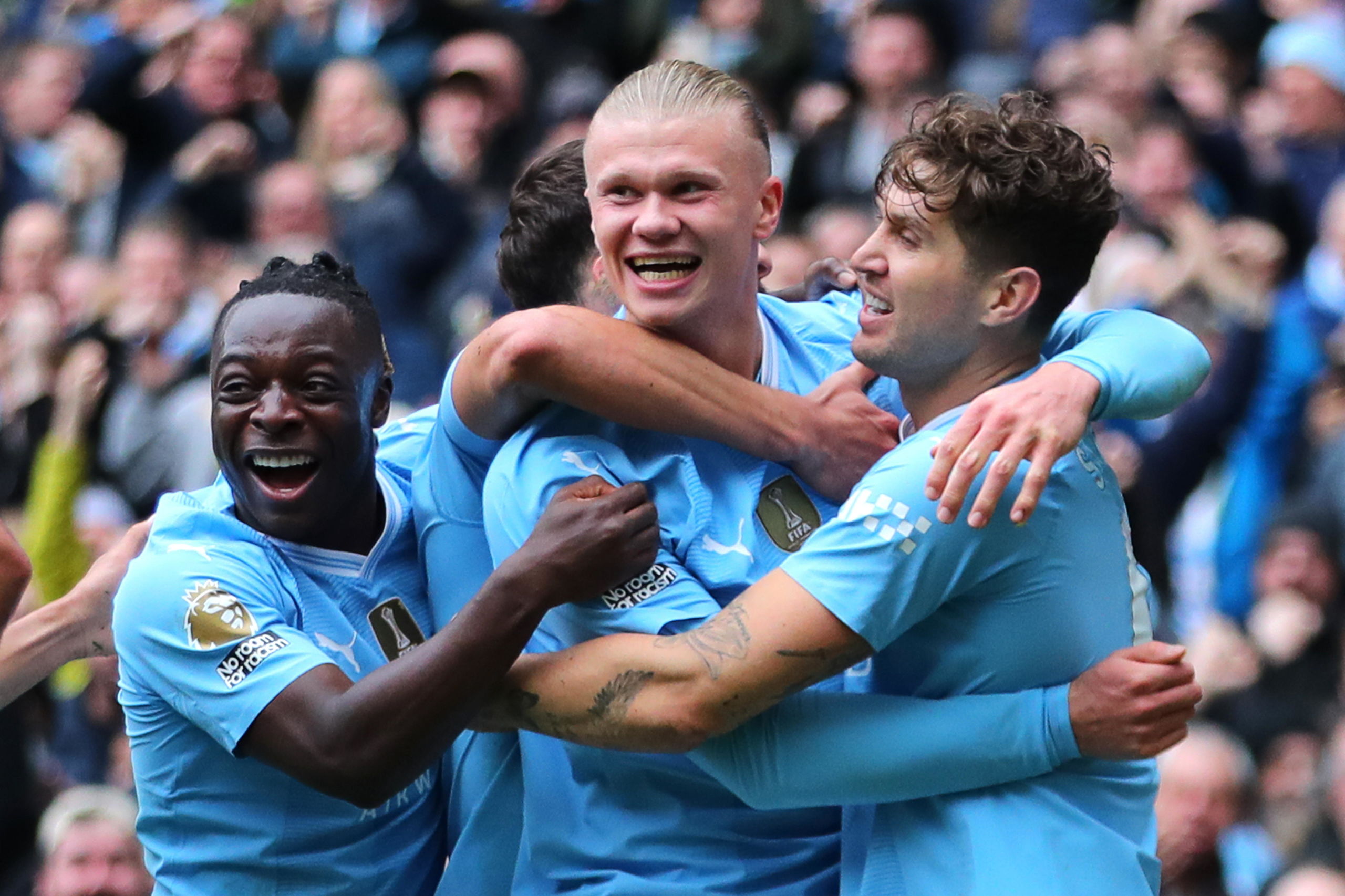 Una persona viralizó una imagen del camarero sirviendo bebidas en el Etihad con la camiseta del United durante el derbi que los 'Sky Blues' ganaron este domingo por 3-0, con un doblete de Erling Haaland y un tanto de Phil Foden.