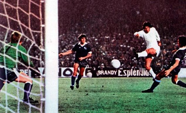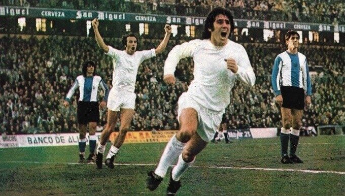 Supuso el 5 a 1 definitivo en el partido de vuelta de los octavos de final de la Copa de Europa frente a Derby County inglés, que se había traído desde Gran Bretaña una considerable ventaja (4-1). En la que sería la madre de todas las remontadas, Santillana controló con el pecho un balón procedente de su compañero Paul Breitner, le hace un sombrero al defensor de turno, y con la derecha empalma un fuerte disparo que bate al meta británico y clasifica en la prórroga al Real Madrid.