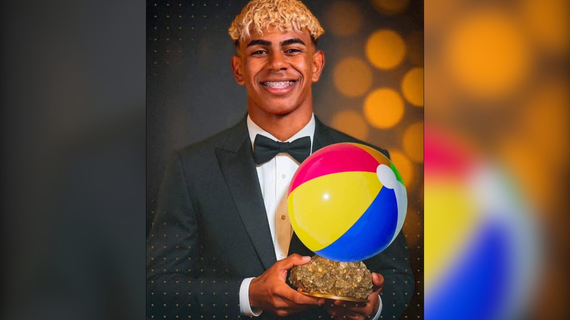 Lamine Yamal con un balón de playa en lugar del Balón de Oro.