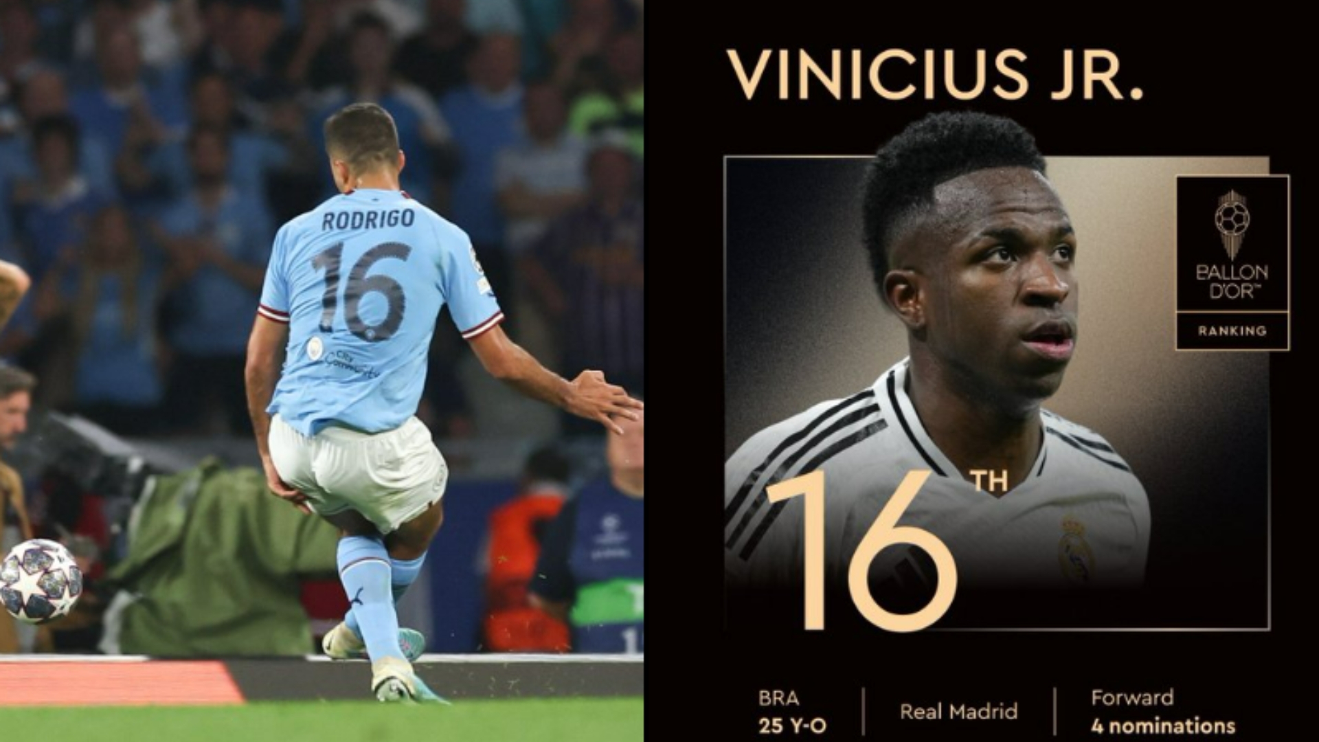 Vinícius Jr. "homenajeando" a Rodrigo quedando en la posición número 16 del Balón de Oro 2025.